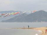 その海岸に降りてみると目の前には海を渡る鯉のぼりが。